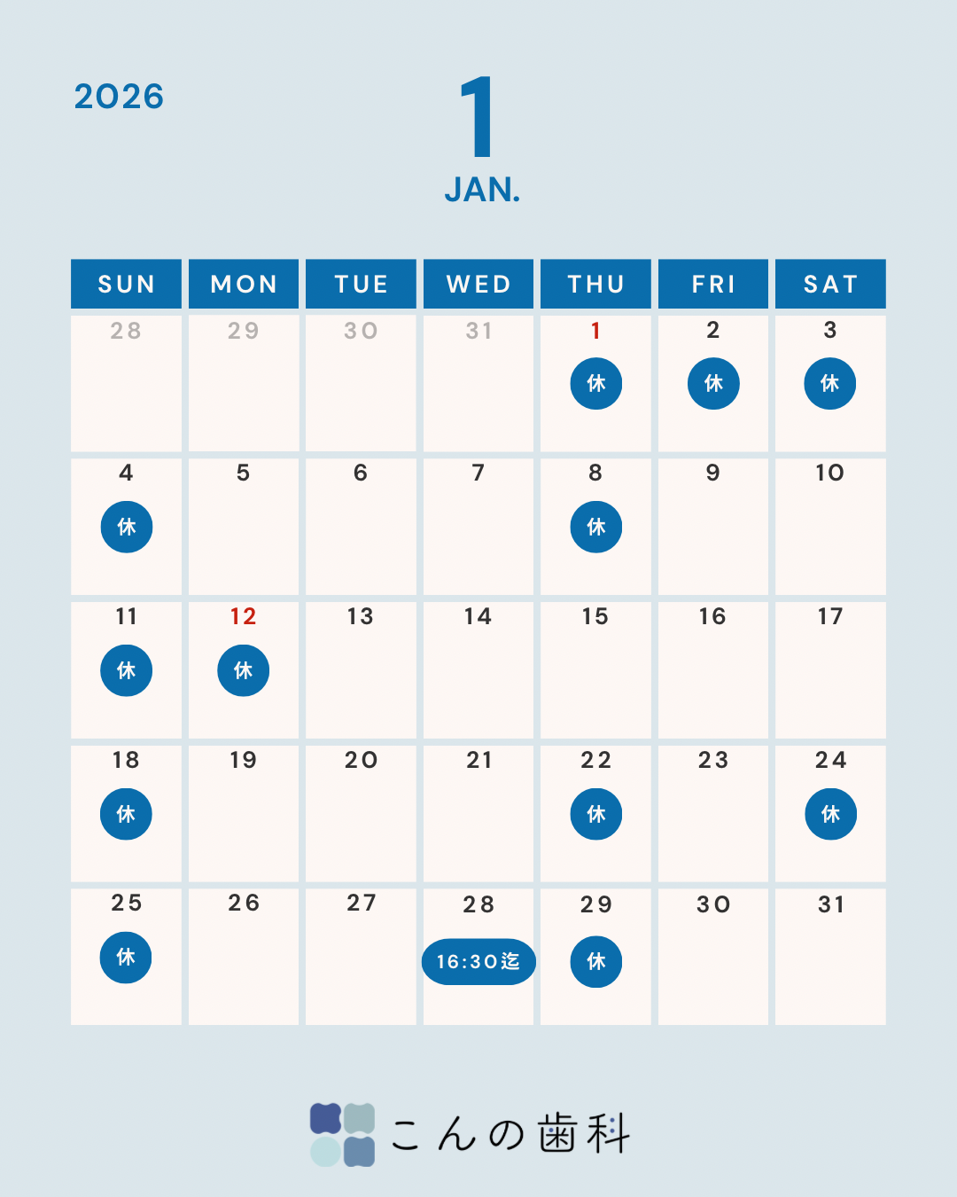 年末年始の休診のご案内です🎍 今年の診療は12/27(土)の16:00までとさせていただきます。 来年は1/5(月)より通常診療いたします。 歯やお口の不調、お悩みがある方は、ぜひ休診前にご相談ください!