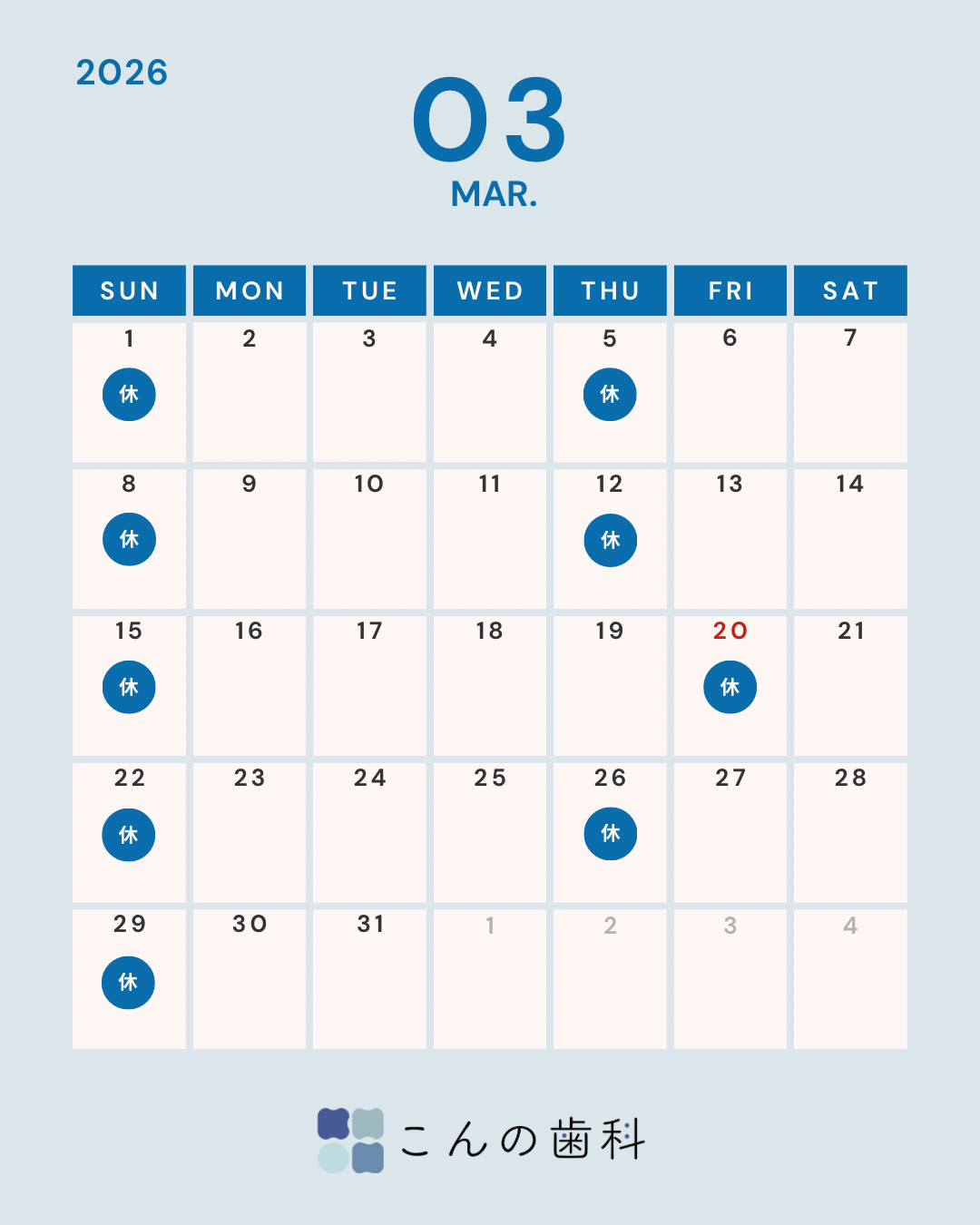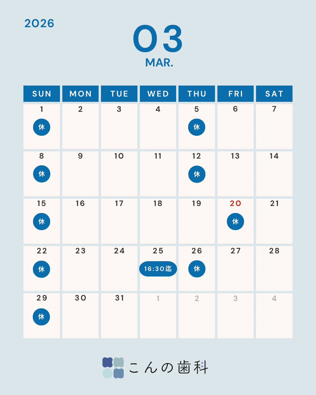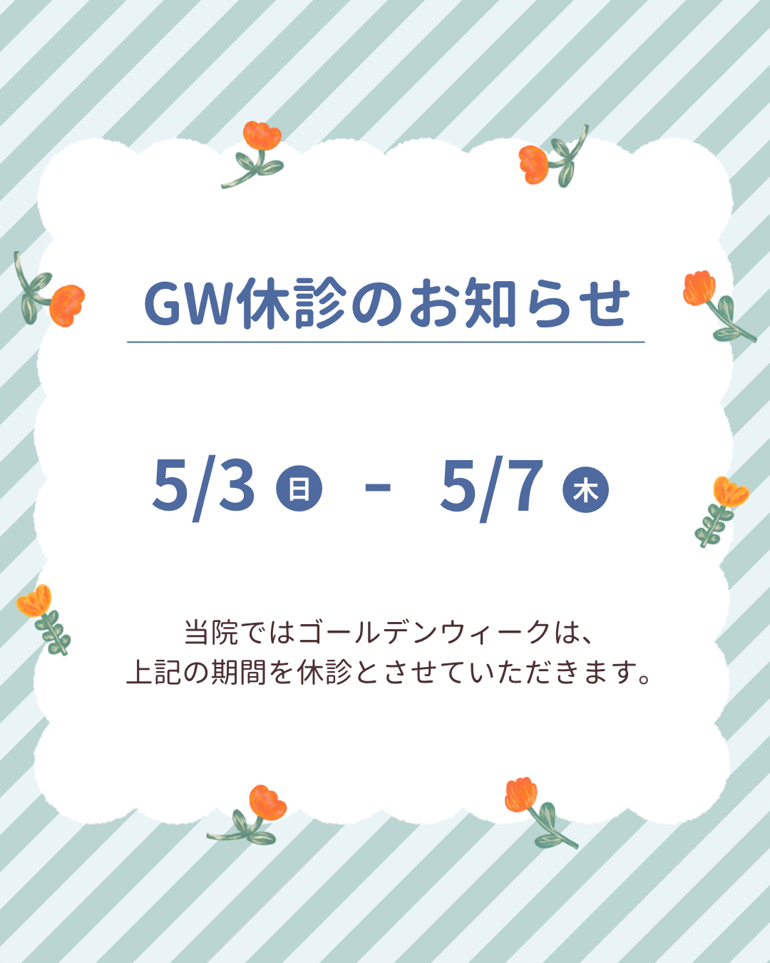 - 休診日:木曜・日曜・祝日(夏季休暇休み、年末年始休みあり)