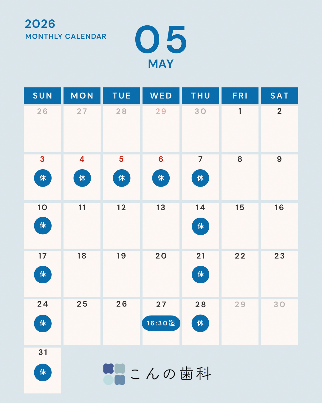 - 祝日のある週は木曜日診療
